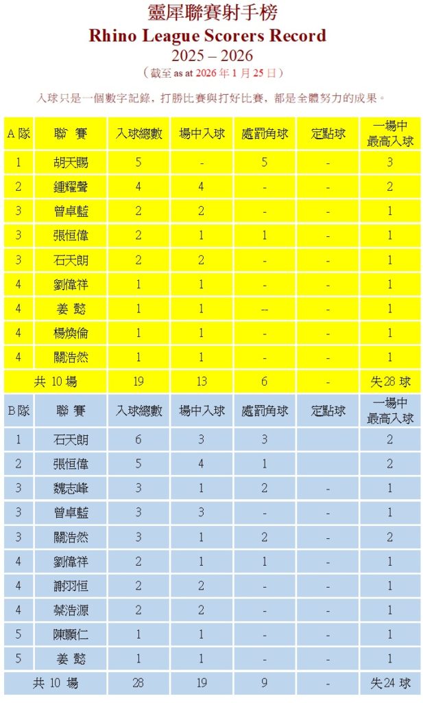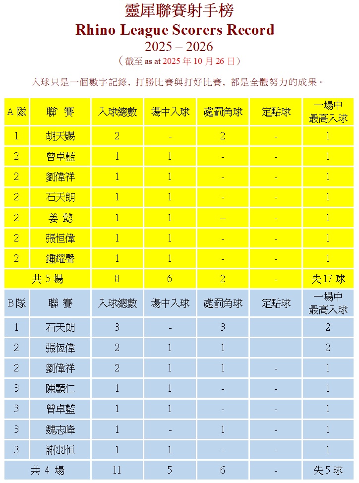 聯賽榜 2010-2011