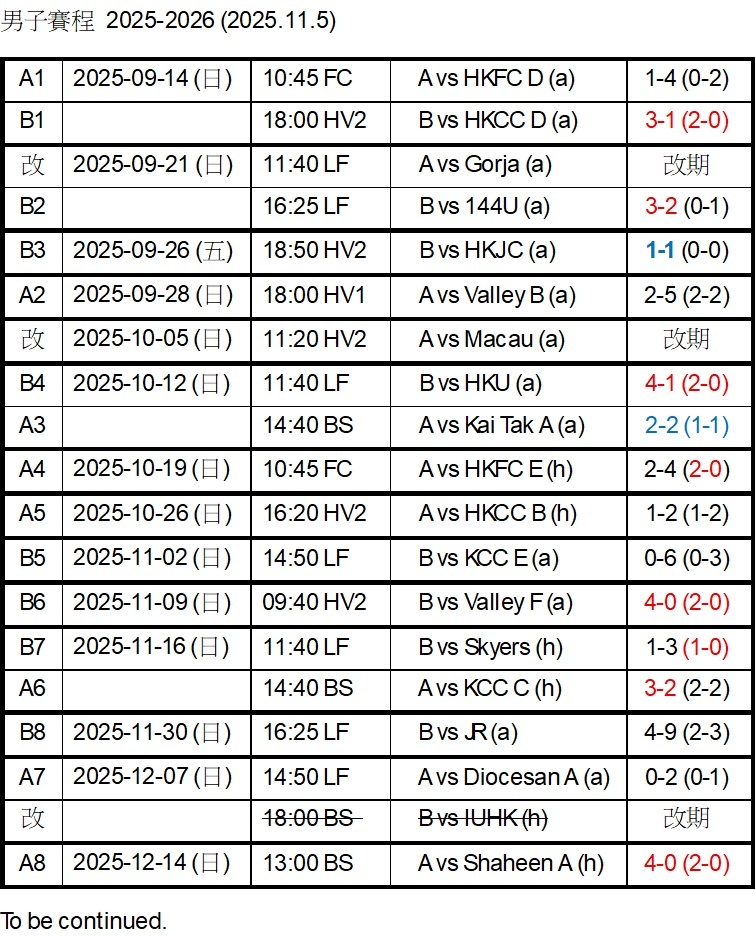 男隊賽程